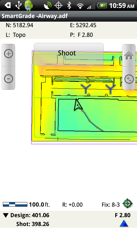 Note: Bill pointed out that the current view Northing and Easting are not live and are for a picked point ala' Smartdirt. It should be the NE for the current location as well as whatever label will be assigned if shot. Also, we may want a developer mode that allows point selection and shows the distance to selected point. This allows us to verify the accuracy of alignment numerically.